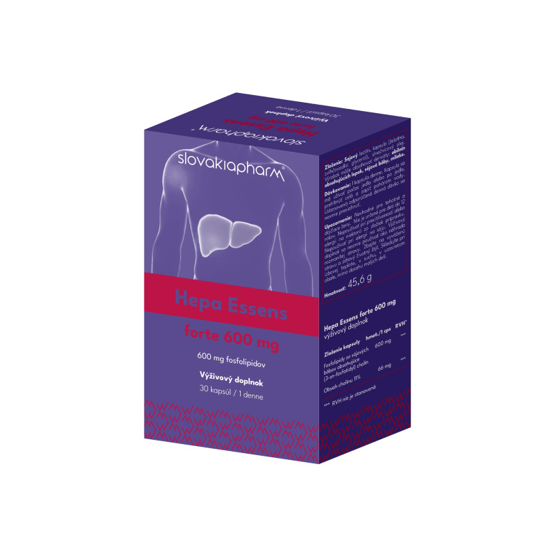 HepaEssens forte 600 mg je výživový doplnok s vysokým obsahom sójových fosfolipidov, ktoré obsahujú prirodzene sa vyskytujúci cholín. Cholín je esenciálna živina, ktorá prispieva k udržaniu normálnej funkcie pečene, správnej látkovej premene tukov a homocysteínu.